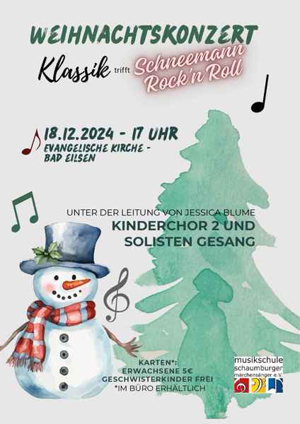 Mi, 18.12.24, Weihnachtskonzert “Klassik trifft Schneemann Rock ‘n Roll”